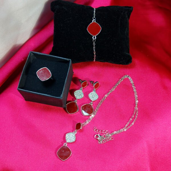 Elevate your jewelry collection with the modern allure of our Silver red Set. The contrast of Red gemstones against polished silver or gold settings creates a striking visual impact, drawing admiration and attention wherever you go. Whether you’re dressing up for a formal event or simply want to exude confidence in your daily life, this set promises to complement your unique sense of style with its contemporary design.